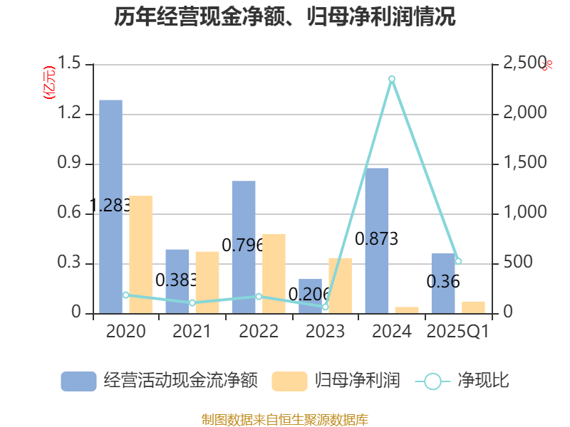 截至2025年一季度末,公司经营活动现金流净额为3599.56万元,同比增加6247.56万元;筹资活动现金流净额-4338.07万元,同比减少4145.35万元;投资活动现金流净额-664.14万元在线配资电话,上年同期为-4930.81万元。