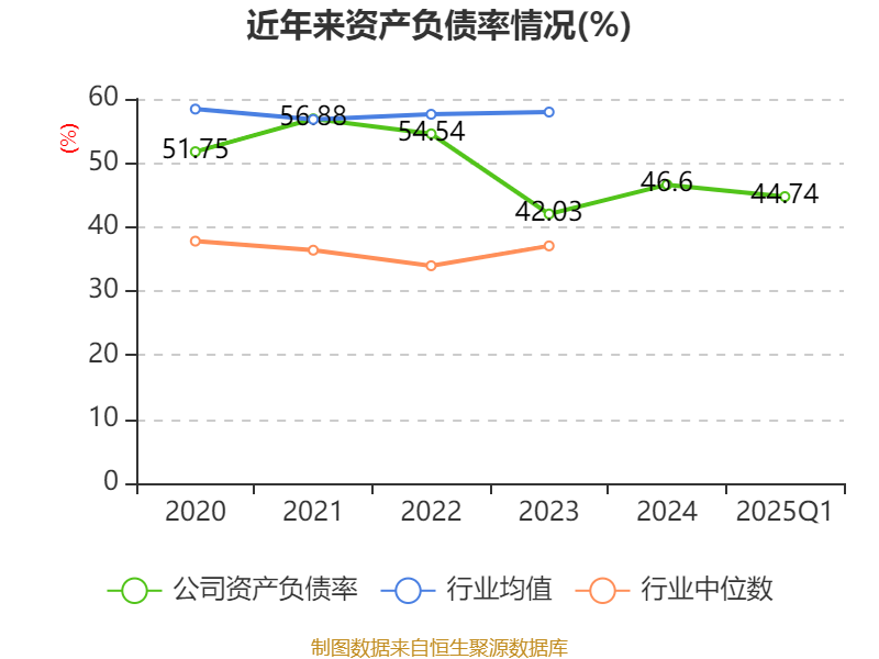 负债重大变化方面,截至2025年一季度末,公司短期借款较上年末减少19.45%,占公司总资产比重下降4.46个百分点;长期借款占公司总资产的3.23%,上年末为0;应付职工薪酬较上年末减少45.53%,占公司总资产比重下降0.5个百分点;一年内到期的非流动负债较上年末增加5.99%,占公司总资产比重上升0.23个百分点。