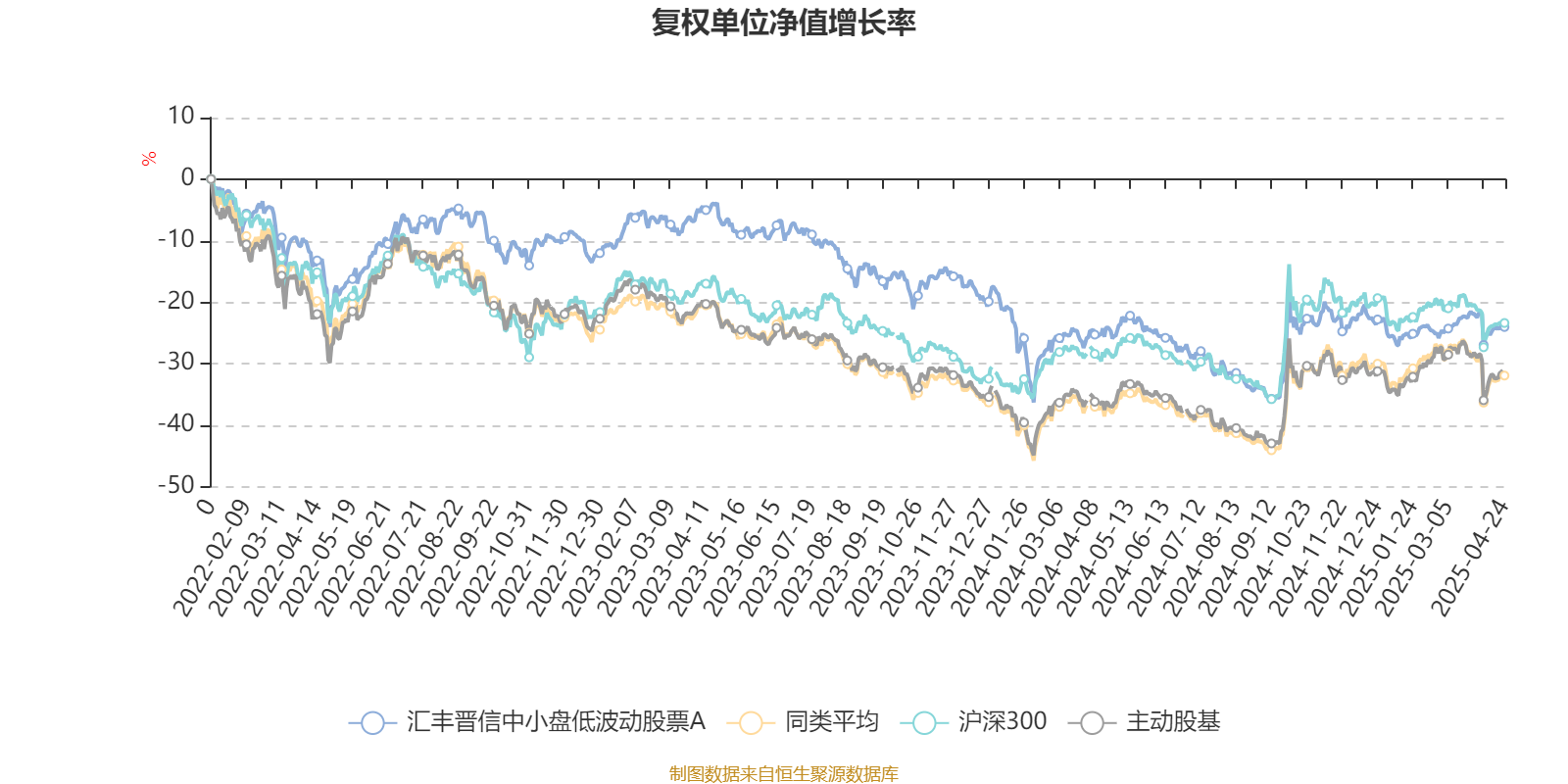 截至4月24日,汇丰晋信中小盘低波动股票A近三个月复权单位净值增长率为1.46%,位于同类可比基金40/100;近半年复权单位净值增长率为-1.14%,位于同类可比基金59/100;近一年复权单位净值增长率为1.93%,位于同类可比基金66/100;近三年复权单位净值增长率为-7.44%,位于同类可比基金42/77。
