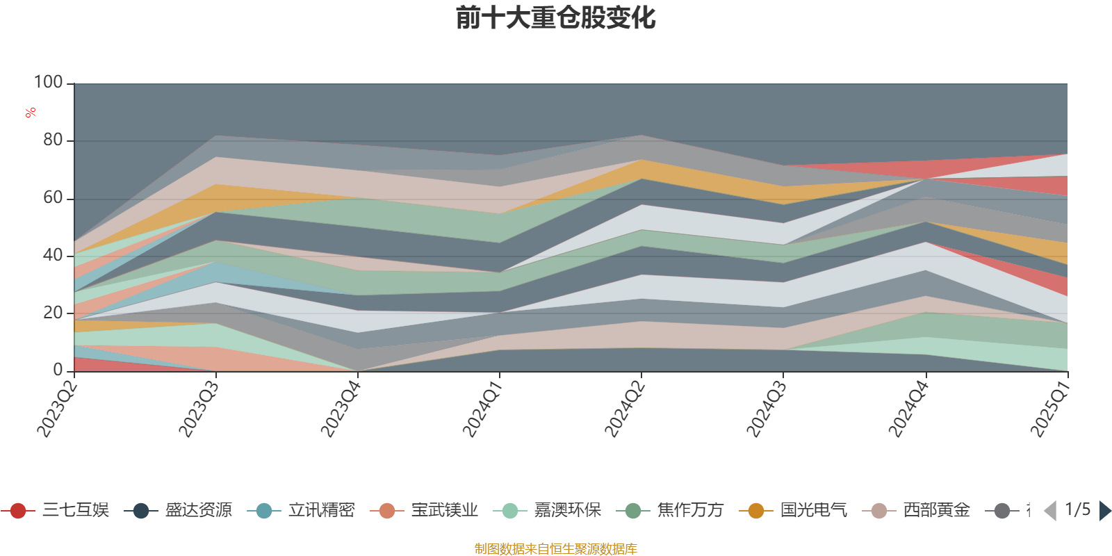 截至2025年一季度末,基金十大重仓股分别是山高环能、河钢资源、焦作万方、中国国航、嘉澳环保、南方航空、中电电机、中国东航、华锦股份、赤峰黄金。